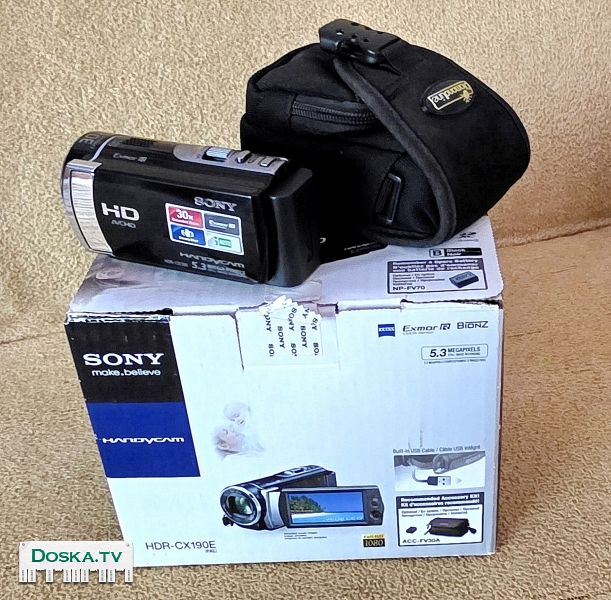 Sony HDR-CX190 — компактная видеокамера с поддержкой Full HD, оптикой Carl Zeiss и 25-кратным зумом. Отличается простотой управления и хорошим качеством съёмки. И отличном состоянии. Прилагается поясная сумка для ношения в поездке.